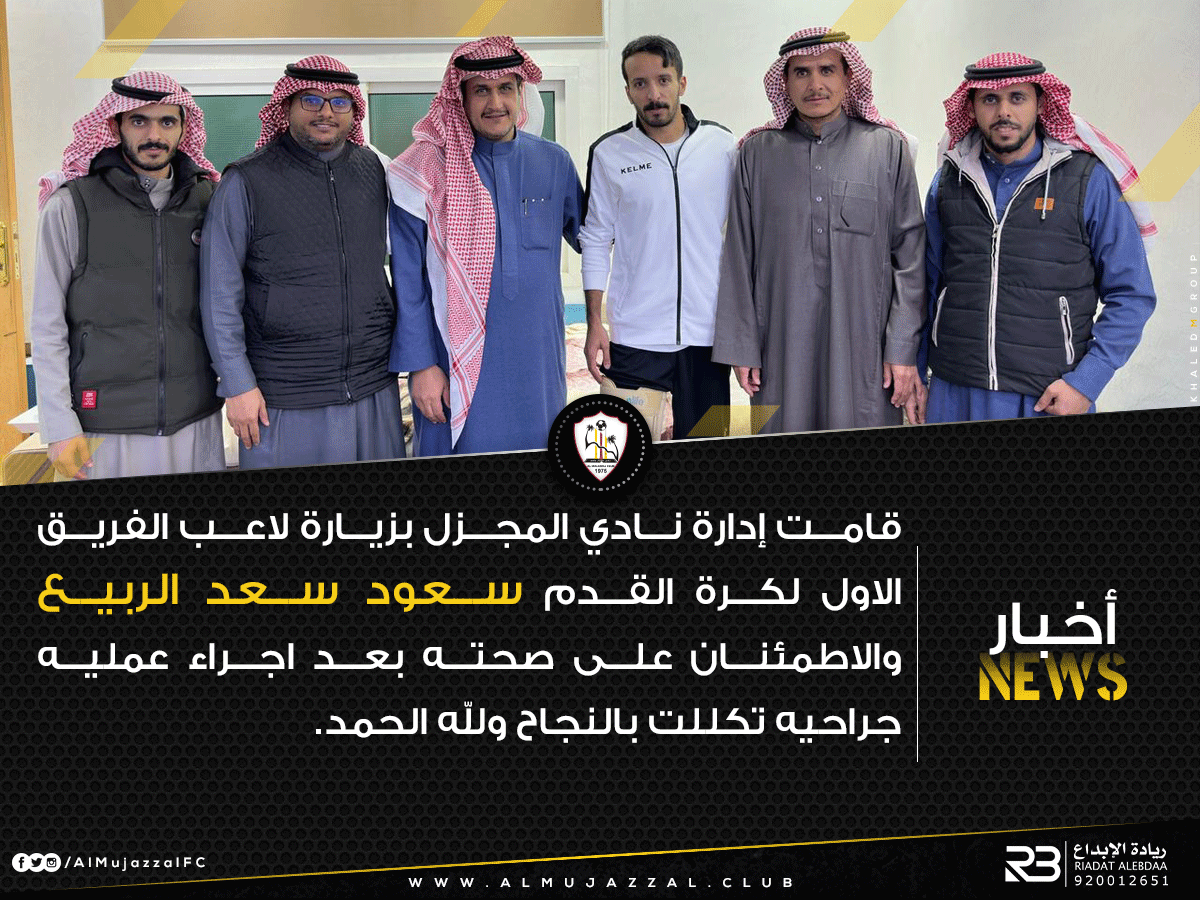قامت إدارة نادي المجزل بزيارة لاعب الفريق الأول لكرة القدم سعود سعد الربيع والاطمئنان على صحته بعد اجراء عمليه جراحيه تكللت بالنجاح ولله الحمد.