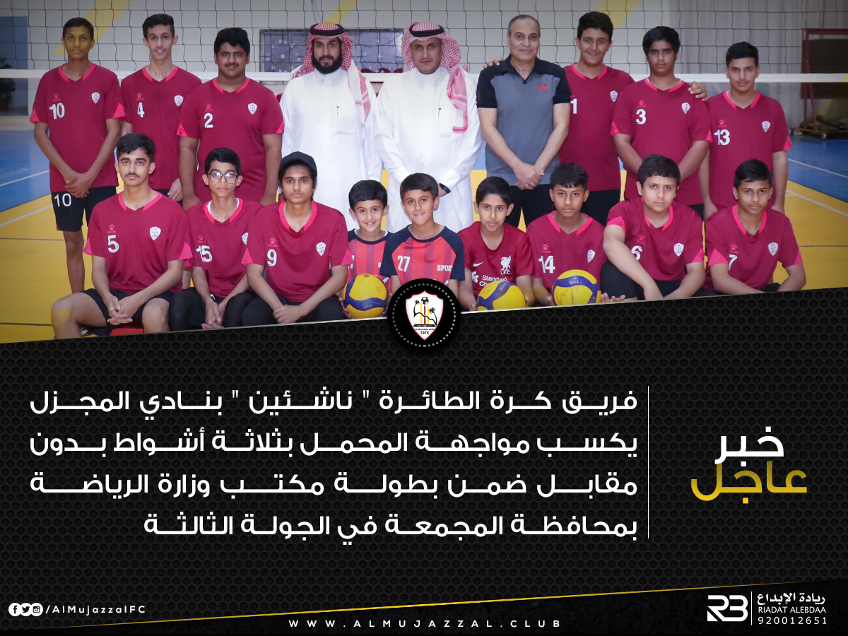 فريق كرة الطائرة “ناشئين” بنادي المجزل يكسب مواجهة المحمل بثلاثة أشواط بدون مقابل ضمن بطولة مكتب وزارة الرياضة بمحافظة المجمعة