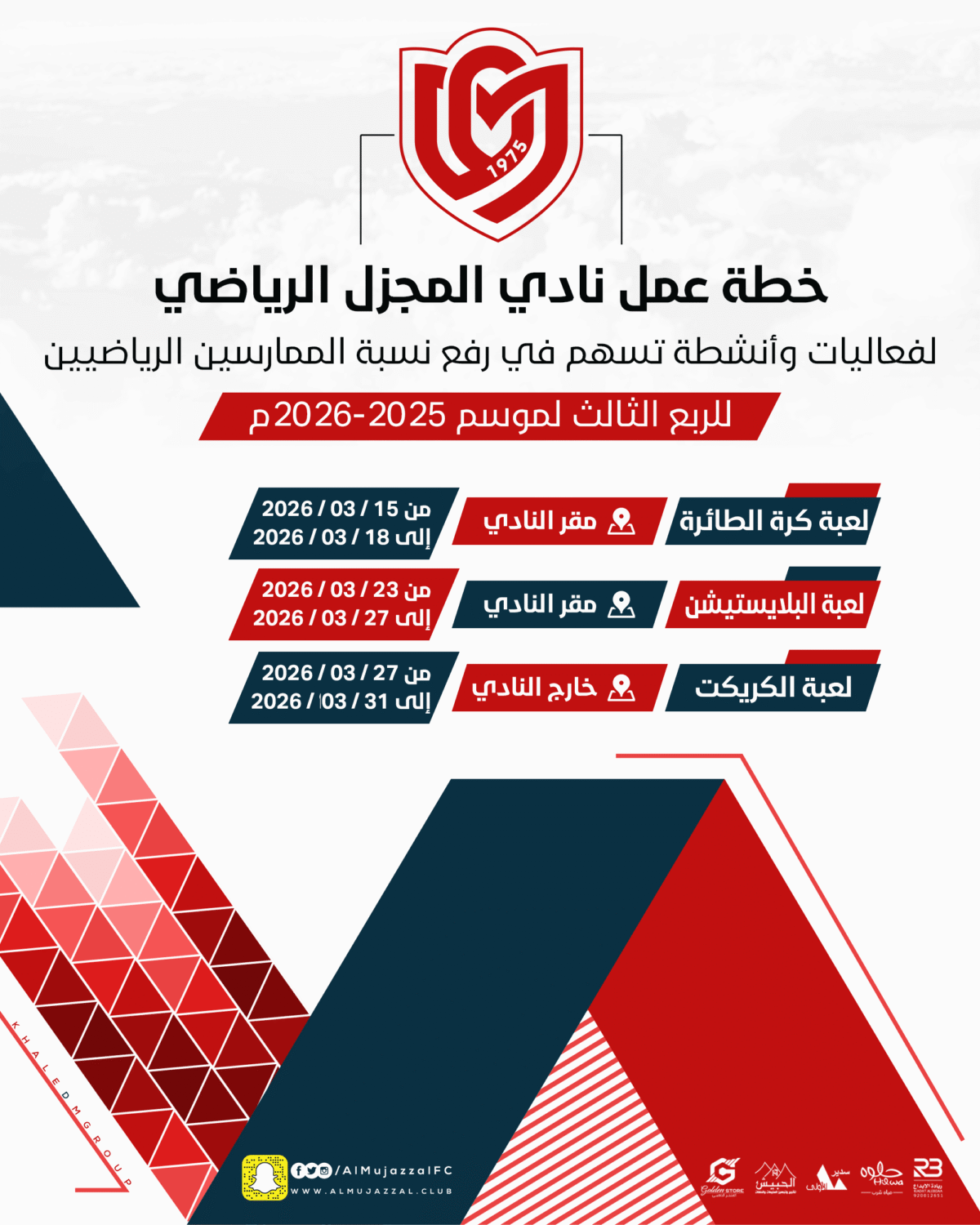 يسعى نادي المجزل الرياضي دوما إلى رفع نسبة الممارسين الرياضيين بالمجتمع المحلي في مدينة تمير، ومن أجل ذلك أعلن عن برنامجه الخاص بالأنشطة التي تحقق هذه الأهداف من خلال حساباته على مواقع التواصل الاجتماعي ، والنادي يدعو جميع أفراد المجتمع المحلي ذكور وإناث للتسجيل بهذه المبادرة.