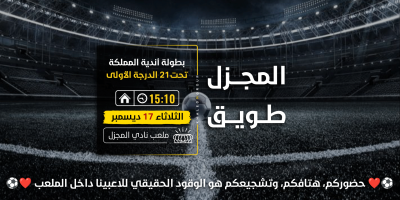 Read Moreكونوا على الموعد لحضور مباراة المجزل وطويق على ملعب نادي المجزل بتمير اليوم الثلاثاء الموافق 17 ديسمبر الساعة 3.15 مساء