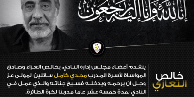 Read Moreيتقدم أعضاء مجلس إدارة النادي بخالص العزاء وصادق المواساة لأسرة المدرب مجدي كامل سائلين المولي عز وجل ان يؤحمه ويدخله فسيح جناته والذي عمل في النادي لمدة خمسة عشر عاما مدربنا لكرة الطائرة